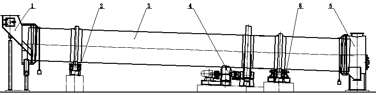 單筒冷卻機結(jié)構(gòu)與單筒烘干機結(jié)構(gòu)類似。主要有:1、進料裝置、2、托輪裝置3、筒體部分4、傳動部分5、托擋輪裝置6、出料裝置等組成。