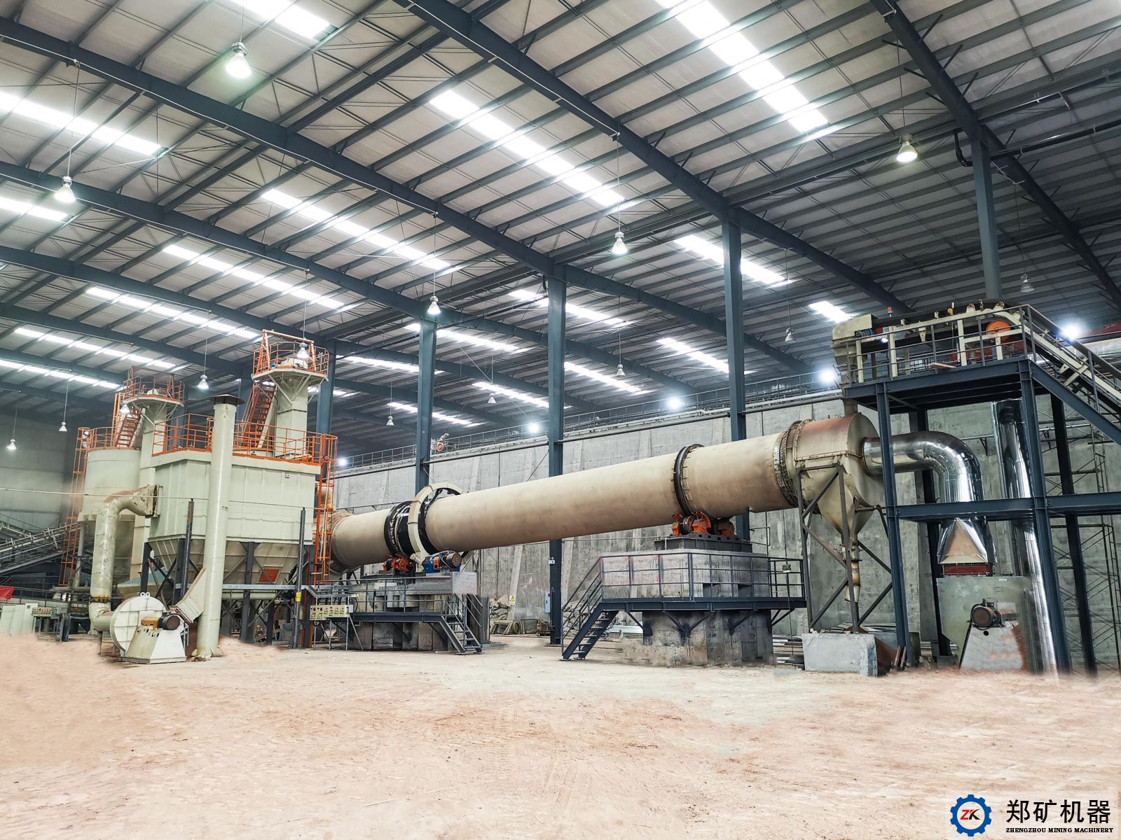 3.4. 筒體部分包括筒體、輪帶和內部裝置;在筒體的進料端,為防止倒料,裝有擋料圈和導料板;在筒體的熱端,為了保護筒體,可裝有耐熱護板;