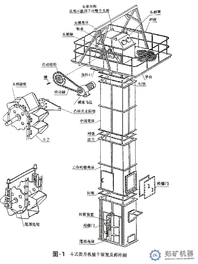 把輸送鏈和料斗裝入提升機殼體內的恰當方法,與安裝的空間和使用提升設備型式有關。
